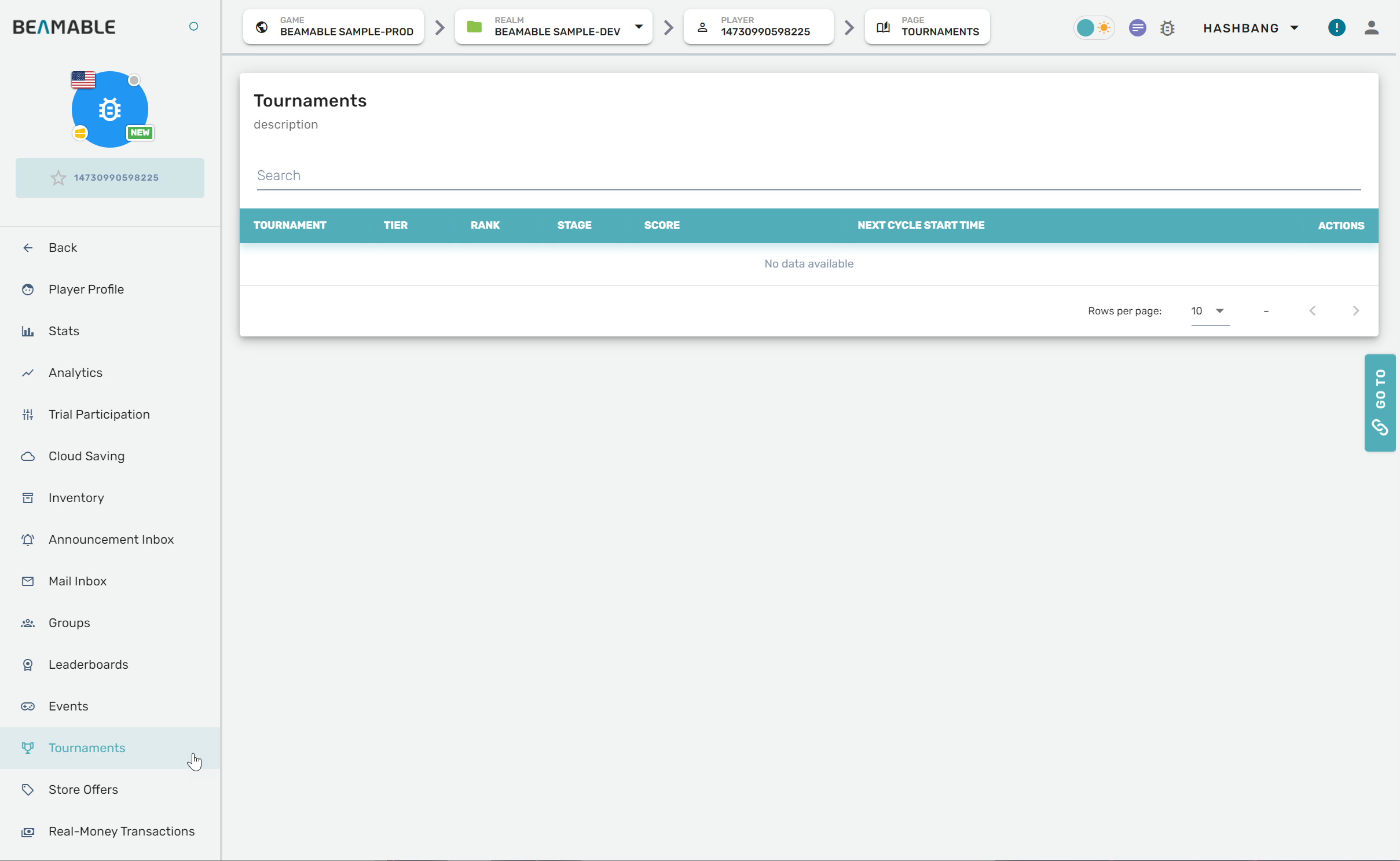 | 3. Navigate to a player's profile page | • Scroll the list or search by playerId, device, etc. |