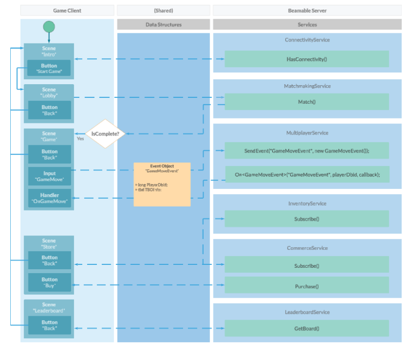 Now that the core game logic is setup, use Beamable to connect 2 (or more) players together. Create the Multiplayer event objects, send outgoing events, and handle incoming events.
