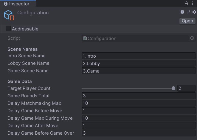 • Select the Configuration asset in the Unity Project Window • View the serialized fields in the Unity Inspector • Can you make the game play faster? Slower? Other results?