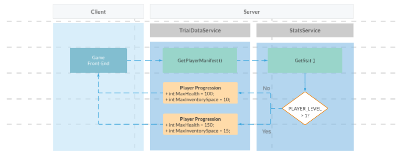 The game front-end loads the player manifest from the TrialDataService. The PlayerProgression data returned depends on a player-specific Stat value.