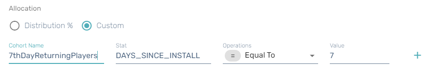 - Select Custom, and give your cohort a name — we used 7thDayReturningPlayers as our example cohort name.