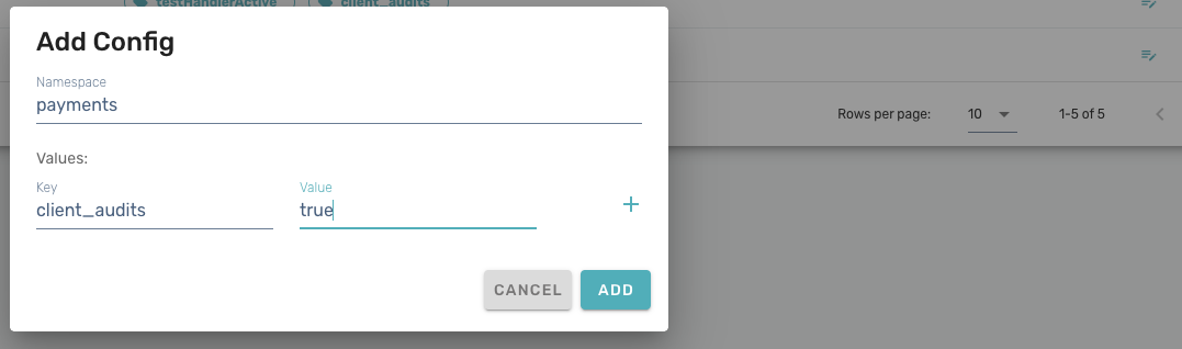 Here we are setting the namespace to payments and then the key is client_audits and we will set the value to true.