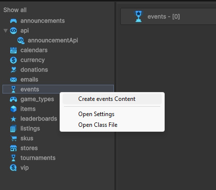 Events, like many other Beamable features, are created, configured, and published via the Content Manager. This guide is intended to show you how to create an event, configure its required (or optional) data, and publish it to your users.