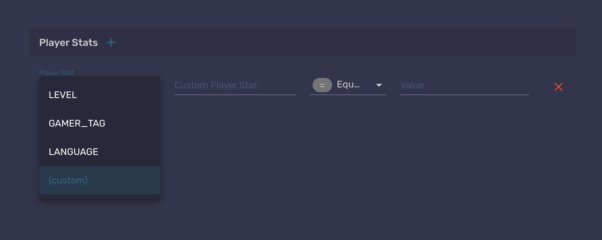 When creating the stat, you will choose between a few automatic stats that are set by the backend. But you can choose to create a custom one, in which you will be prompted to enter the name of the stat and the value to be compared with. This conditional is going to be used to send the campaign only to those who match the stat criteria.