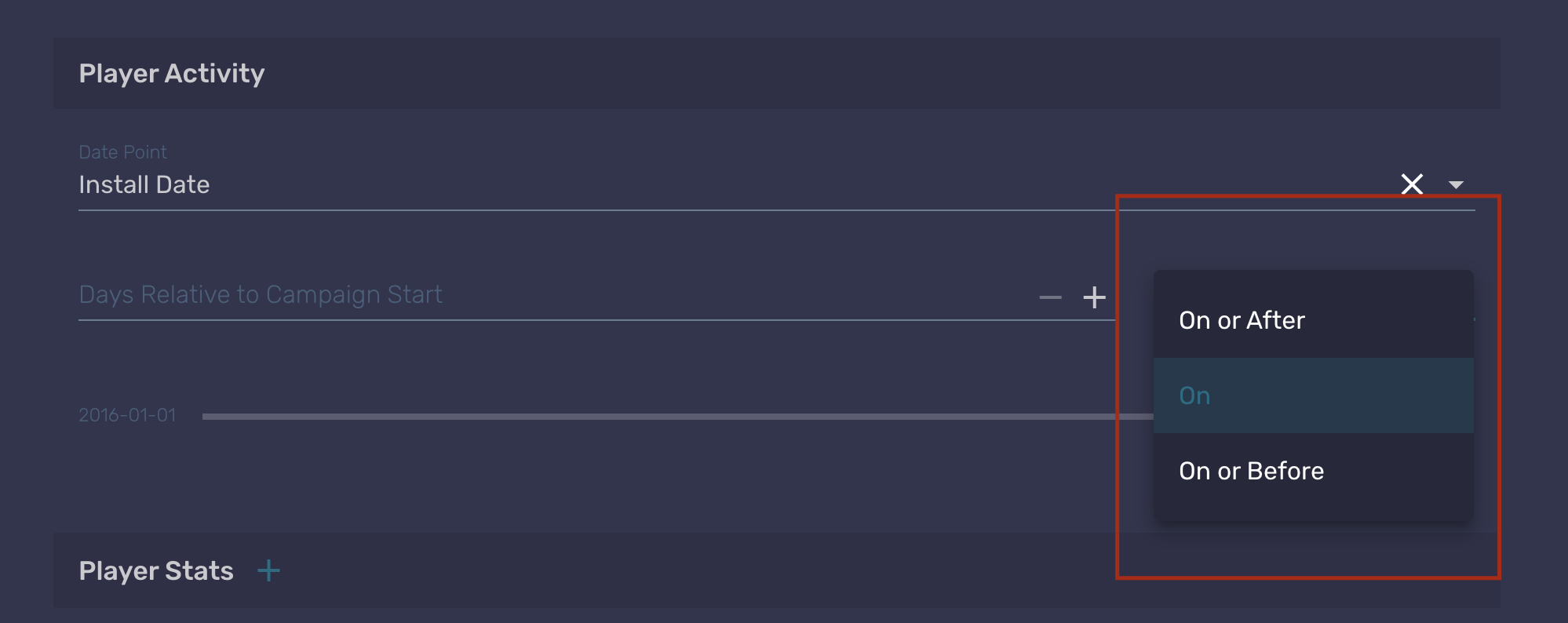 These are used to create campaigns using time as parameters. For example, you can use the install date of players as a start point to trigger the campaign, by setting it to happen a few days after that time. The values that can be used as date points are: