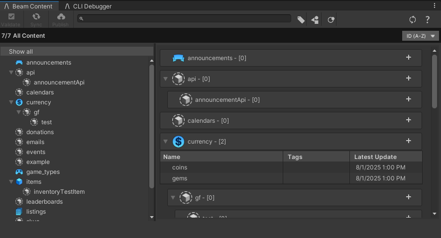 The new Content Manager in Unity now uses the Beamable CLI Content Manager, enabling content management even outside Unity.
