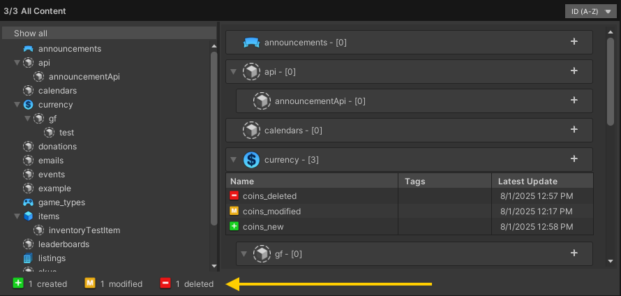 Here is the user interface of the Beamable "Content Manager" tool window.