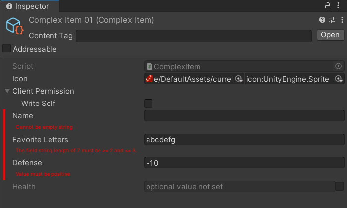 The content system supports optional validation for each field of a ContentObject subclass. This allows game makers to easily build tooling to facilitate team members with their content administration tasks.