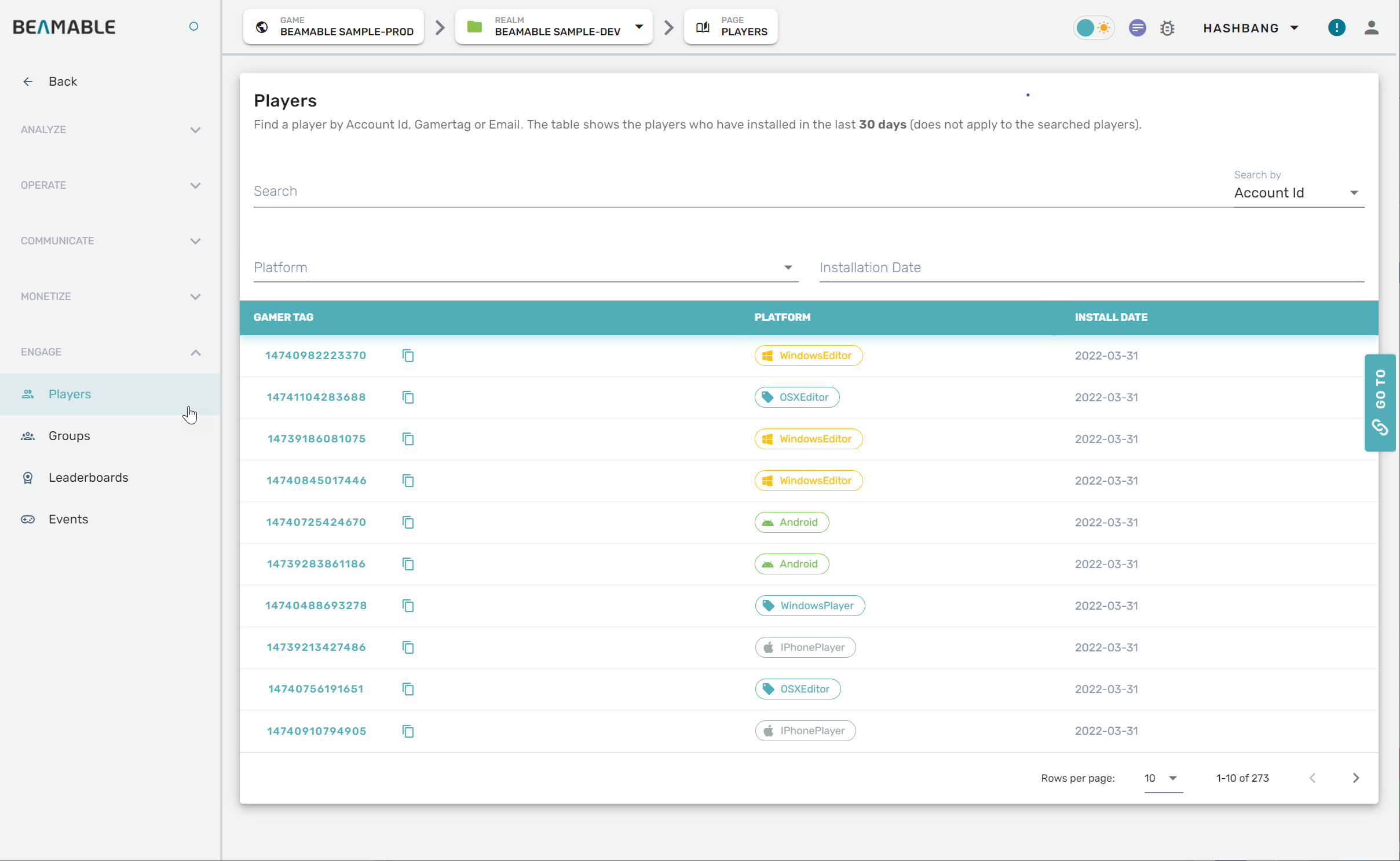 | 2. Expand the "Engage" section on the sidebar | • Click "Players" |
