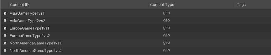For this example, we'll be creating a few game types for some different regions of the world: North America, Europe, and Asia.