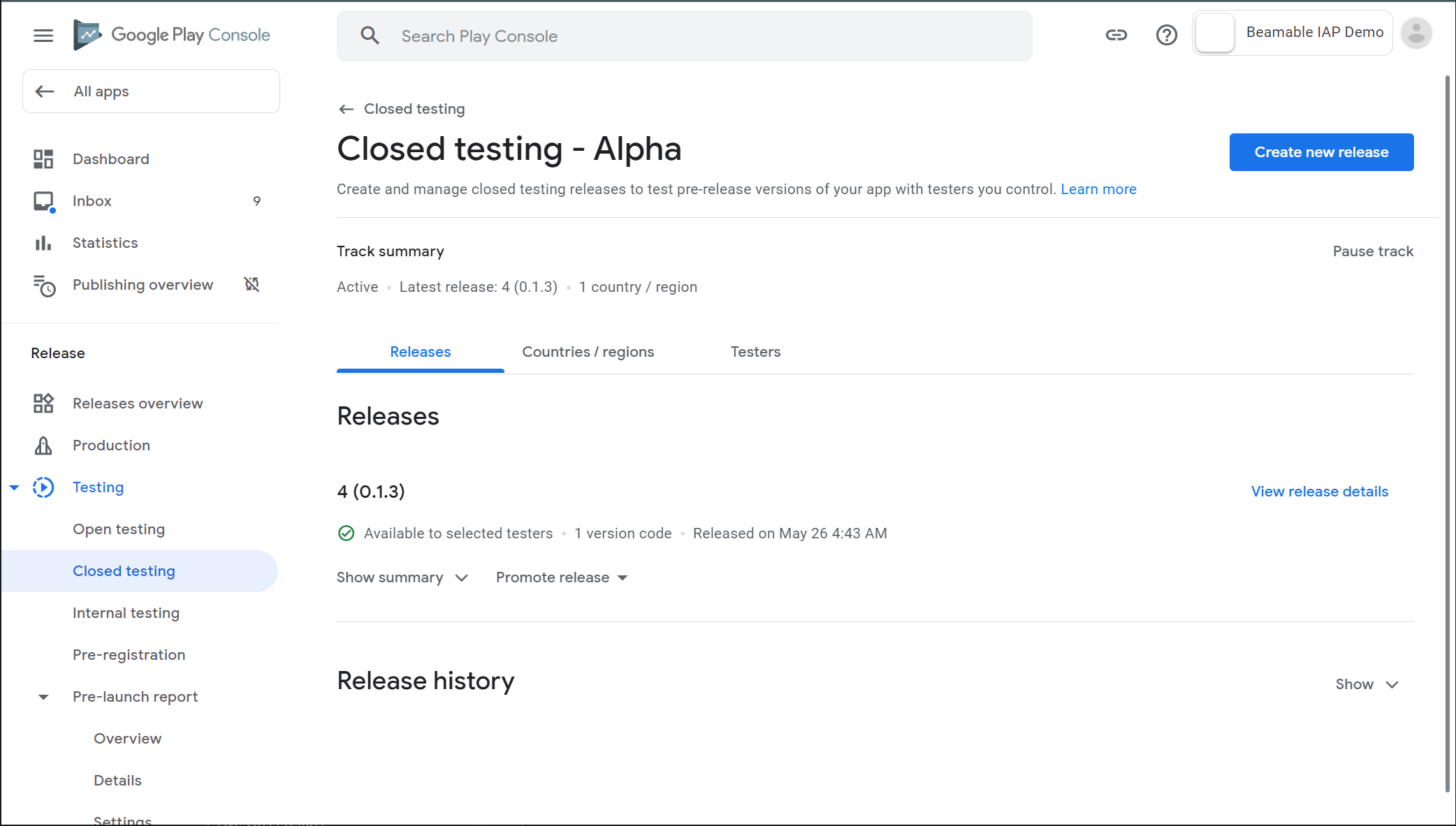 | 5. Upload the .aab file to your Google Play app in a Closed Testing track. |
