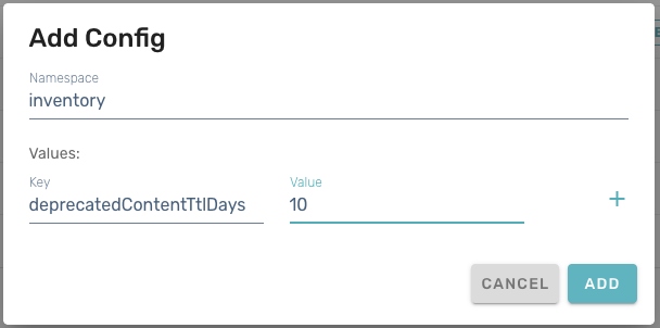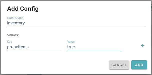 To enable inventory pruning, go to the Operate > Config section of the Beamable Portal and add two entries in the "inventory" namespace using the Add + button. The two configuration values to add are pruneItems and deprecatedContentTtlDays. Item pruning is turned off by default (that is, the default value for pruneItems is false), and the default time-to-live (TTL) is 10 days.