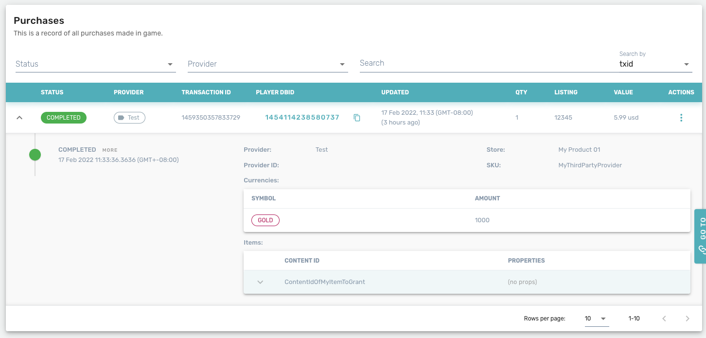 To validate if the purchase was successful, we can also use the InventoryService to print out the inventory before and after the purchase. See the Inventory feature for more details.
