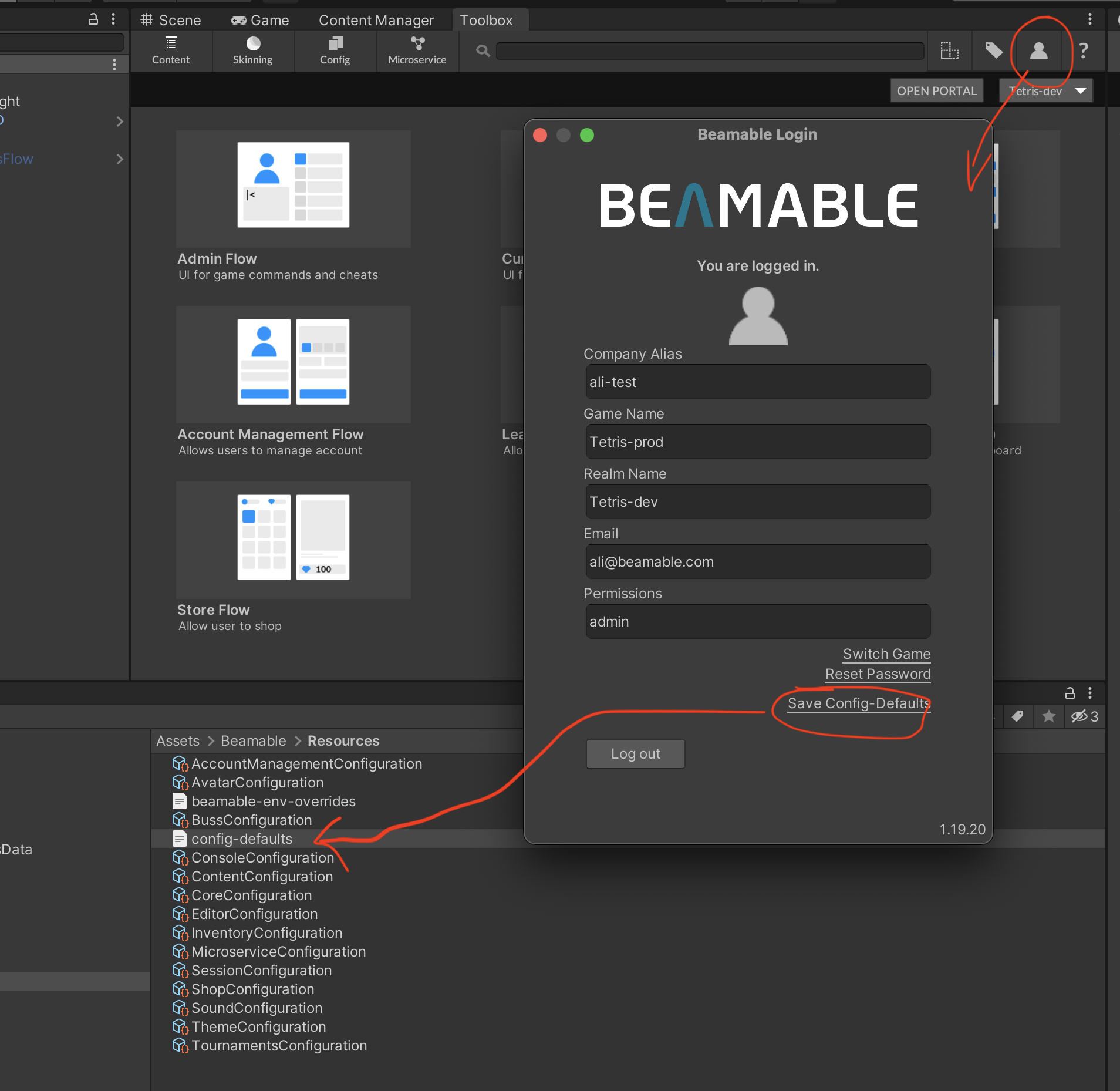 Debug.Log("Checking for Beamable Config Override...");