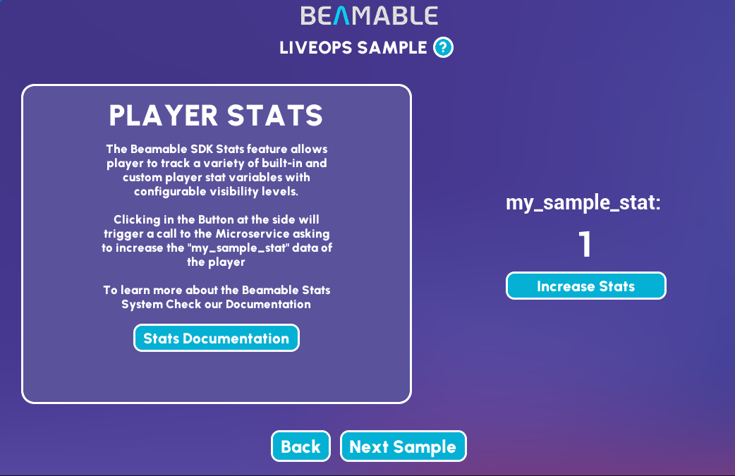 Aside from our BeamableCore Plugin, here's what the sample contains: