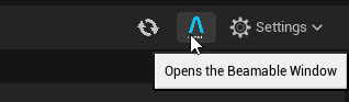 To open the Beamable Editor Panel, select the Beamable icon on the right side of the Unreal Engine toolbar. This will open the Beamable Editor Panel, where you can access all available features and settings.