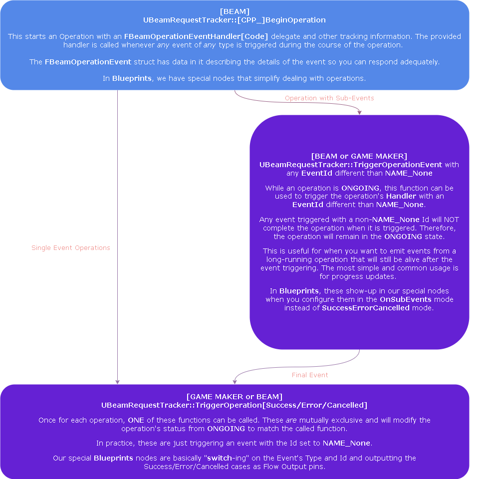 Every Operation has an int64 id called the FBeamOperationHandle managed by the UBeamRequestTracker, a UEngineSubsystem. We use it to track the operation's state, its emitted events, its current status and which of Beamable's requests are part of it.