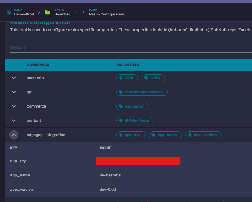 EdgeGap integration requires three configuration parameters that should be stored in your Realm Config: