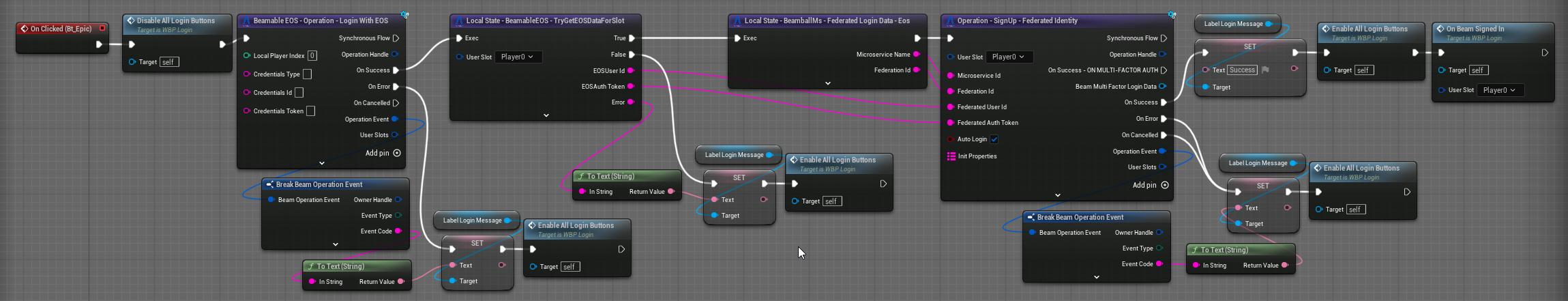 In Blueprint, you can invoke the EOS login flow using operation nodes: